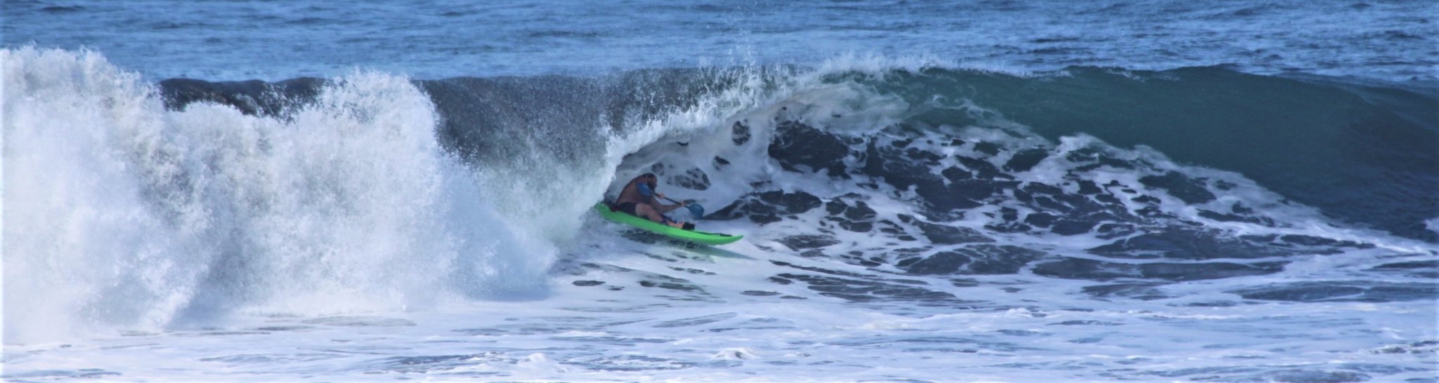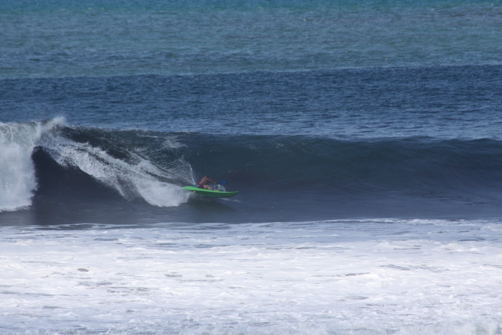 A surfing kayak made for all sizes of waves that can withstand the pressures of the largest storms. The Psylock Fury has the capability of a white water kayak; Eskimo rolls, on wave cartwheels, clean 360s, the versatility and freedom of a sit on top, and the cutting speed of a surfboard. The rider in all photos is 300lbs so she will float you, but still rips for smaller riders.